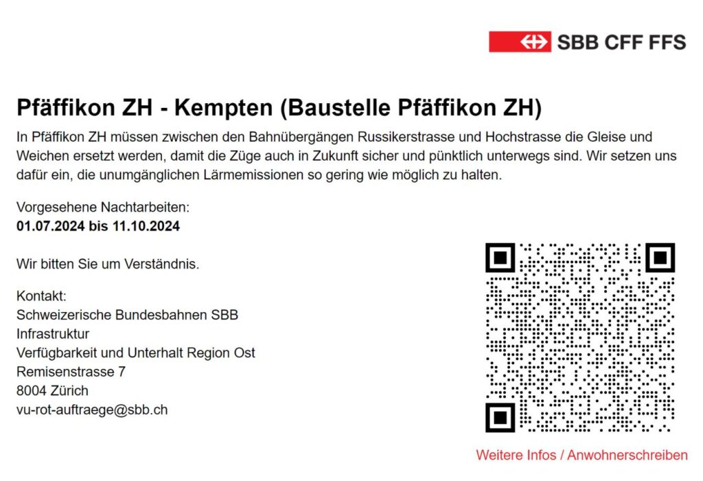 Gleis- und Tiefbauarbeiten im Bahnhof Pfäffikon ZH